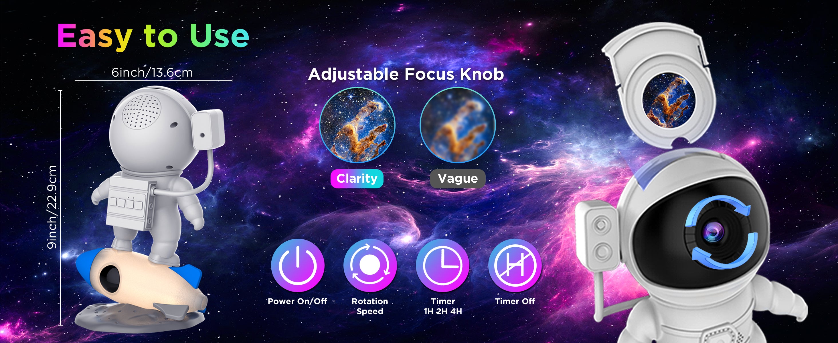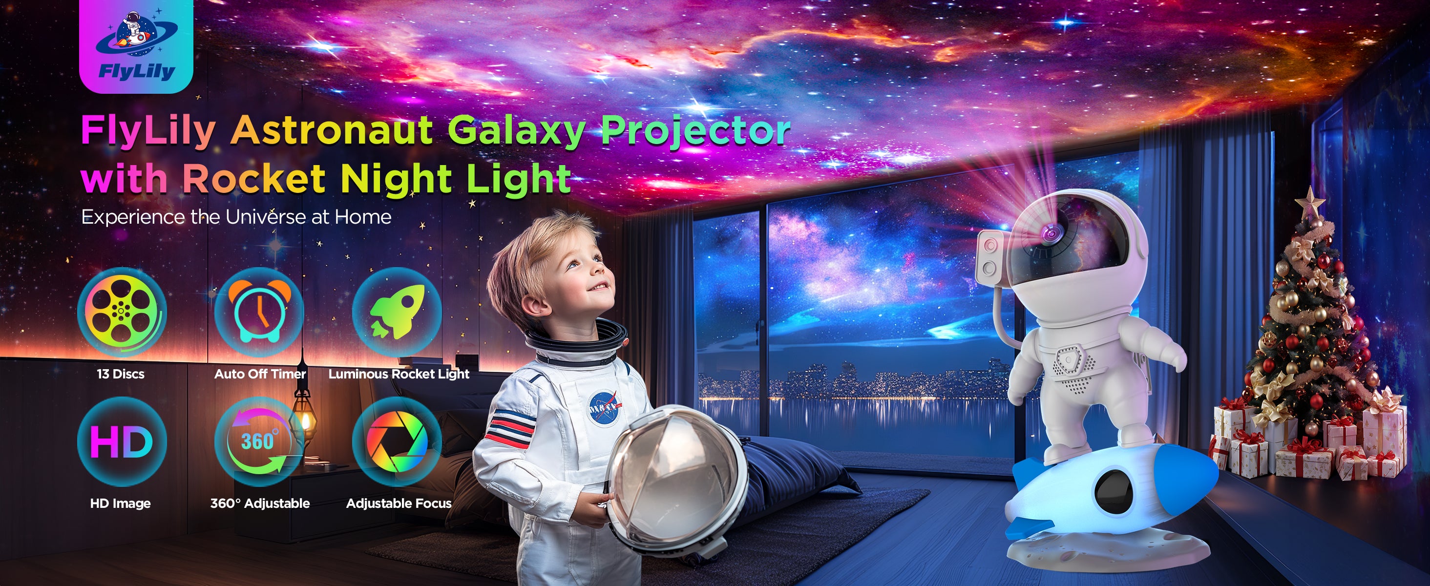 FlyLily’s Rocket Astronaut Star Projector transforms any space into a personal planetarium, projecting 13 different galaxy scenes with stunning clarity.