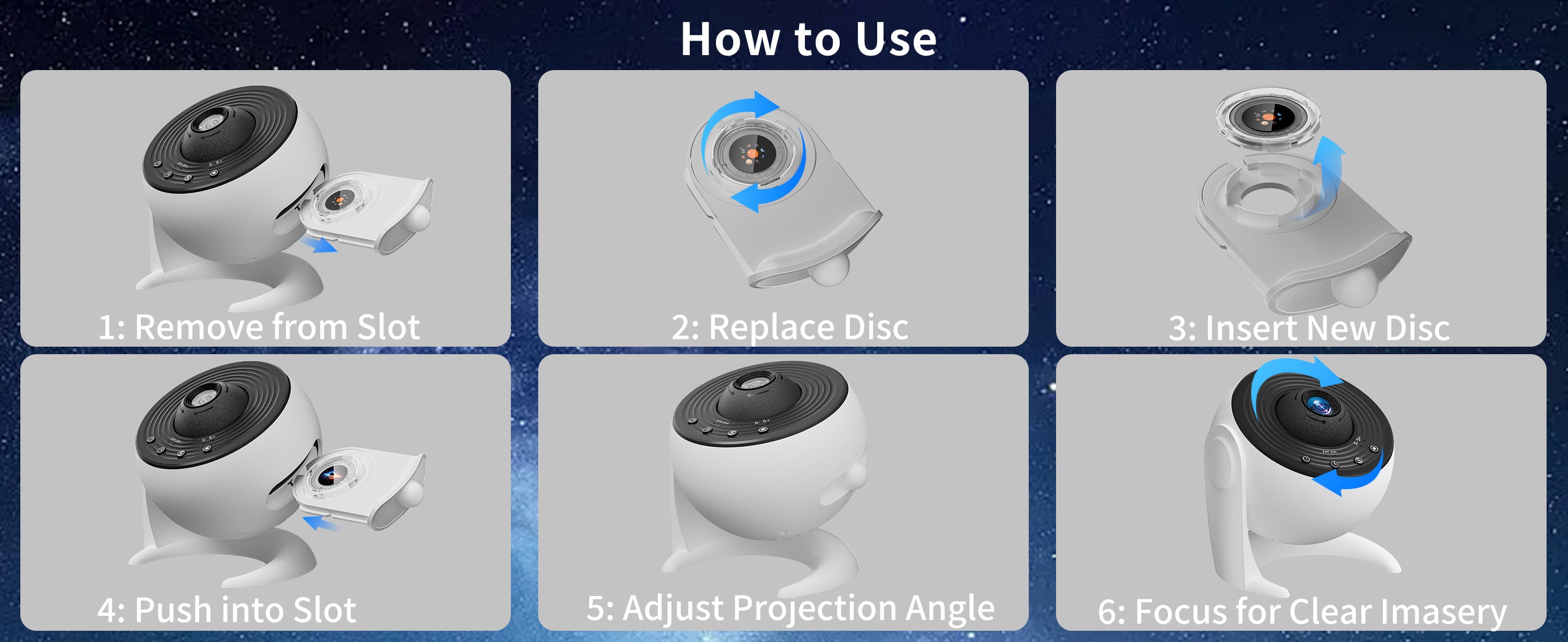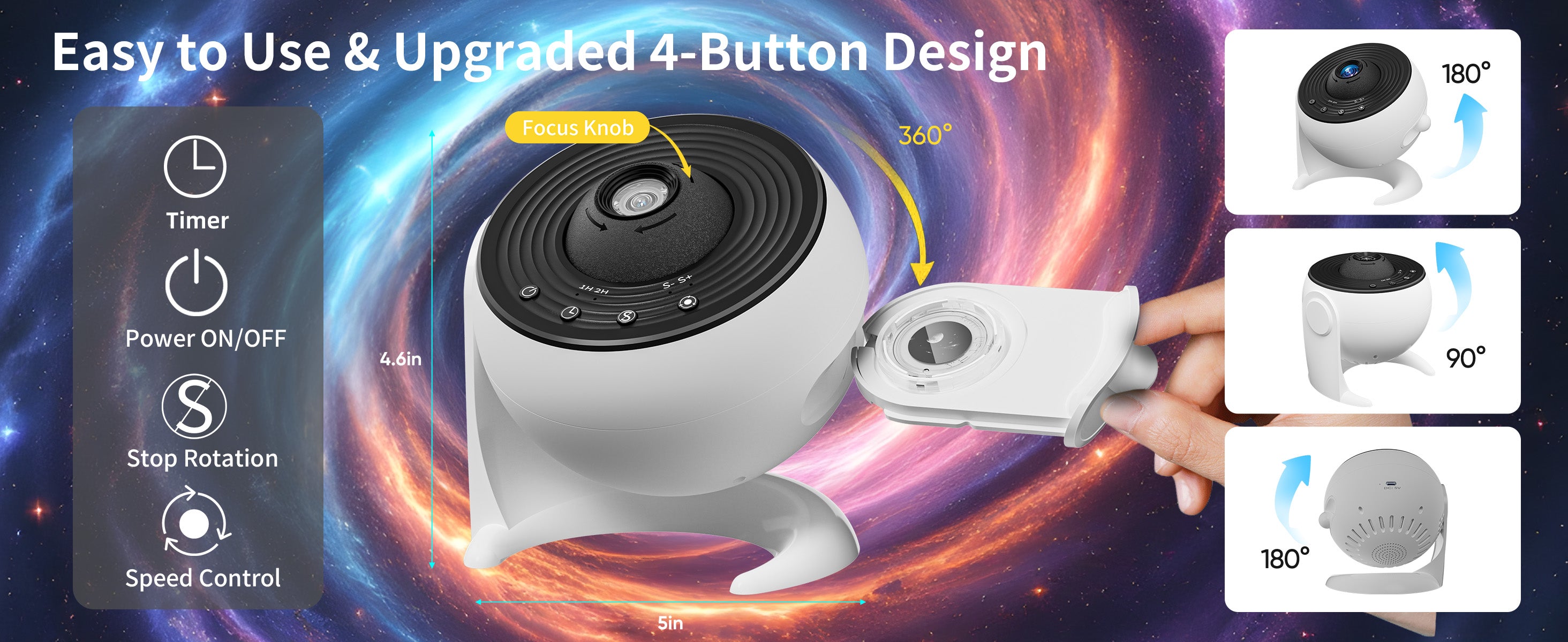360° rotating starry sky for immersive room atmosphere.