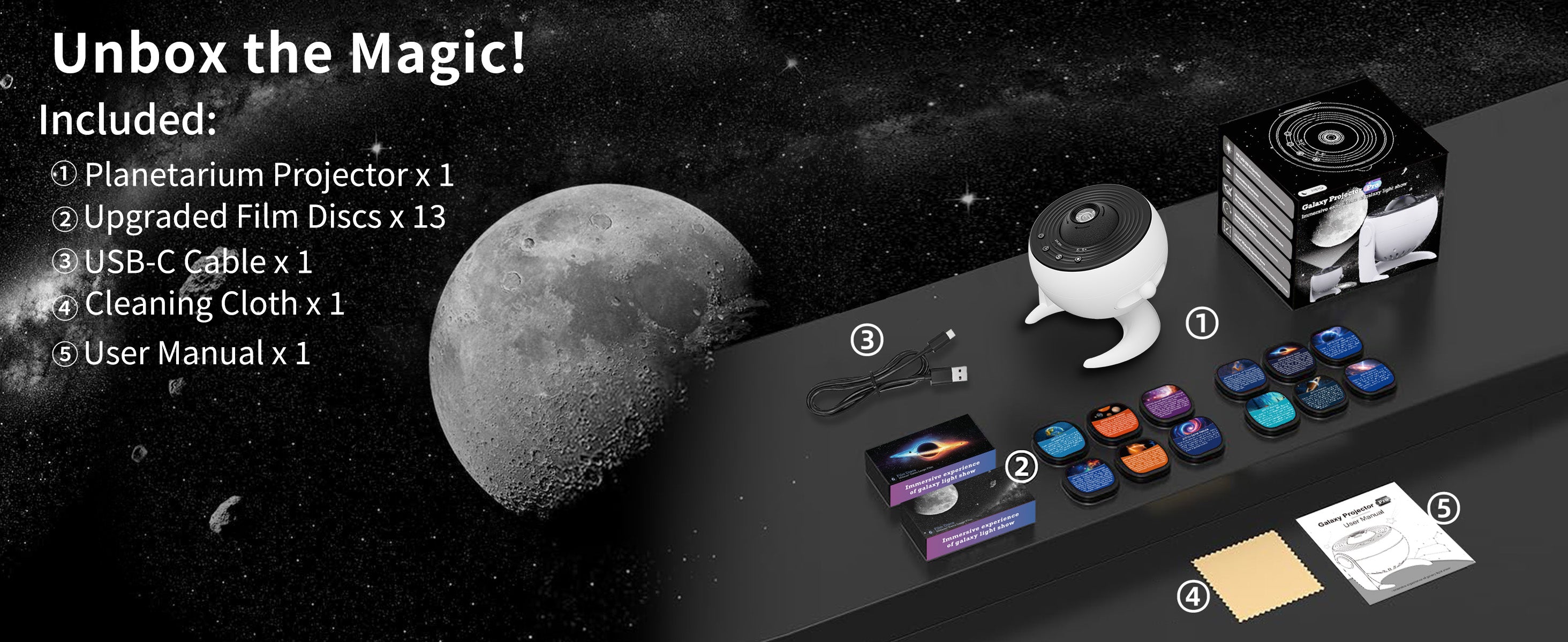 Unlike ordinary galaxy lights, FlyLily uses 13 real astronomical HD discs, bringing authentic universe scenes—from the Milky Way to deep-space nebulae—into your room with stunning clarity and depth.
